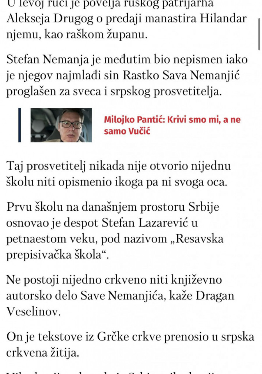 Kako kaže, sudeći po tom tekstu "đilasovci neće rušiti samo spomenik Stefanu Nemanji".