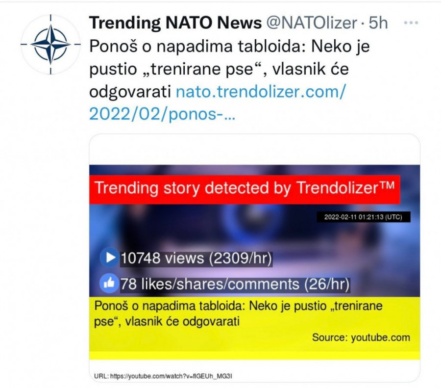 Ovo je jasan pokazatelj da je Zdravko Ponoš NATO kandidat, jer u opisu sajta koji ga brani stoji da su u pitanju “najčitanije NATO vesti”.