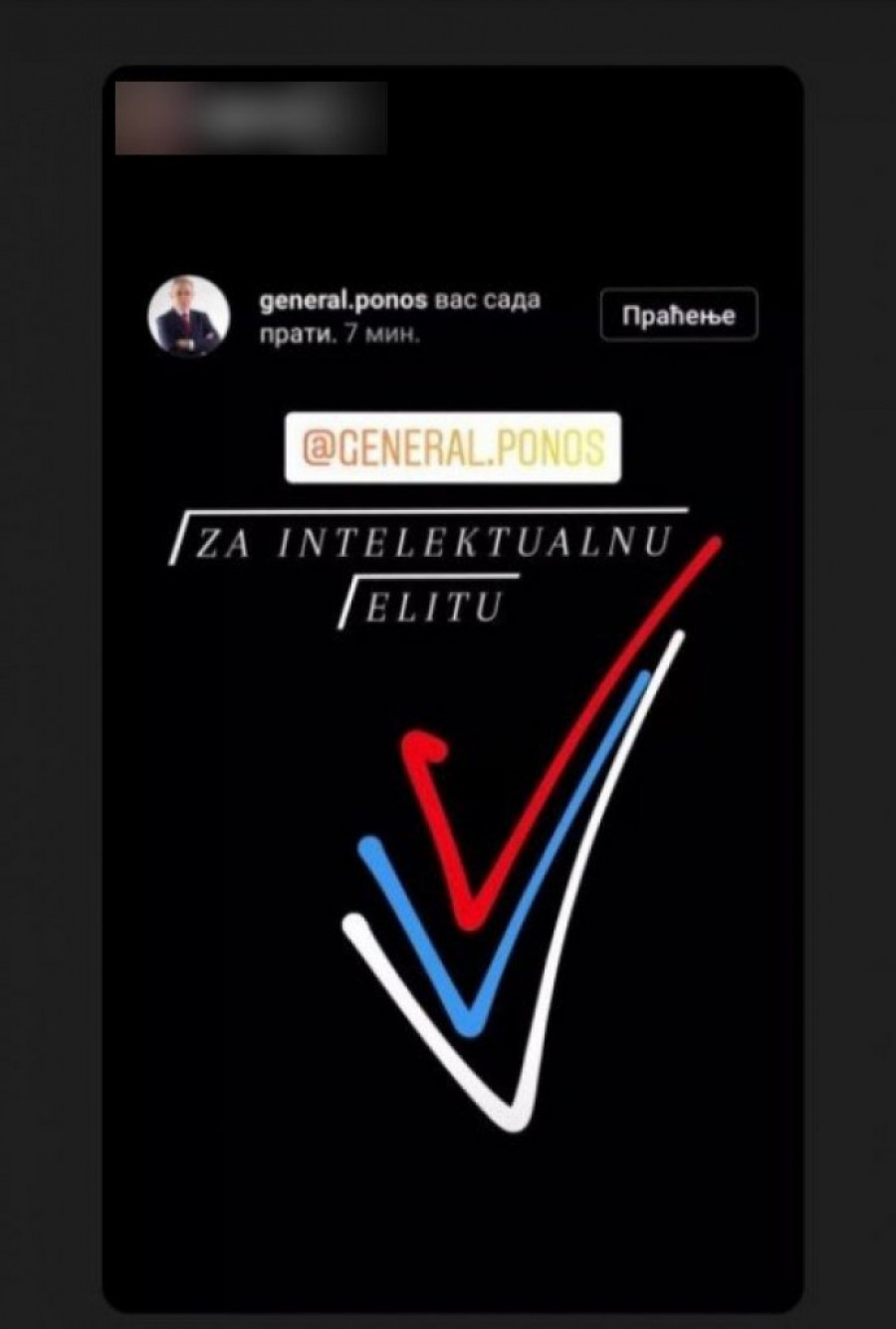 Naime, Zdravko Ponoš je na svom profilu general.ponos postavio objavu jedne korisnice Instagrama, koja je označila Đilasovog kandidata i napisala “za intelektualnu elitu”.