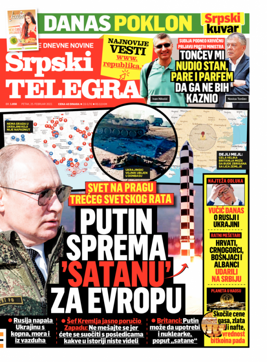 Srpski telegraf u štampanom izdanju za petak 25. februar donosi pregršt važnih i interesantnih priča.