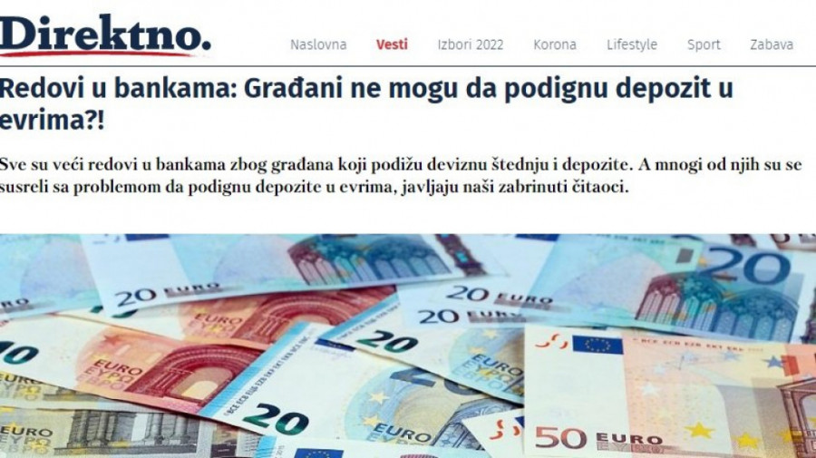 Naime, objavljeno je na portalu Direktno da su im "zabrinuti čitaoci" javili da su sve veći redovi u bankama zbog građana koji ne mogu da podignu deviznu štednju i depozite.