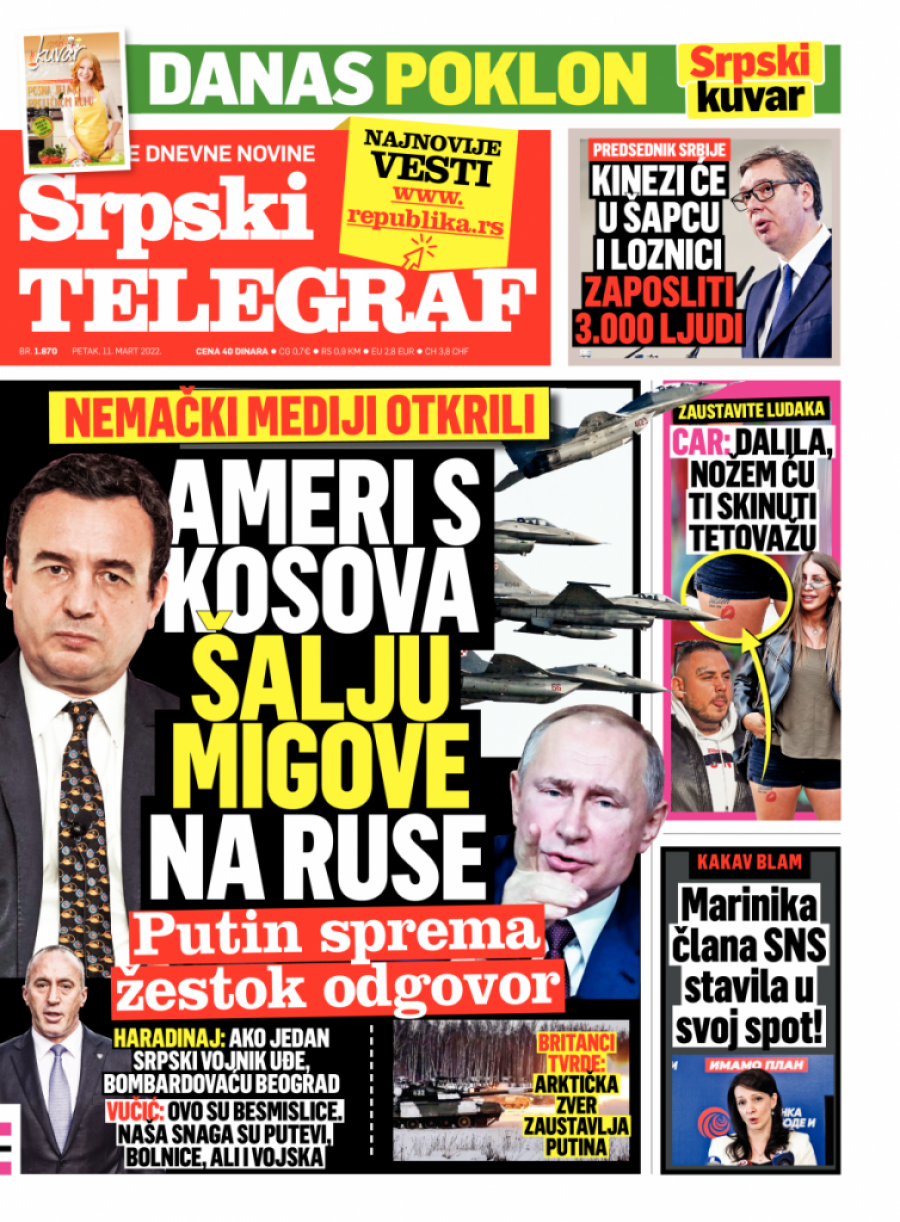 Srpski telegraf u štampanom izdanju za petak 11. mart donosi pregršt važnih i interesantnih priča.