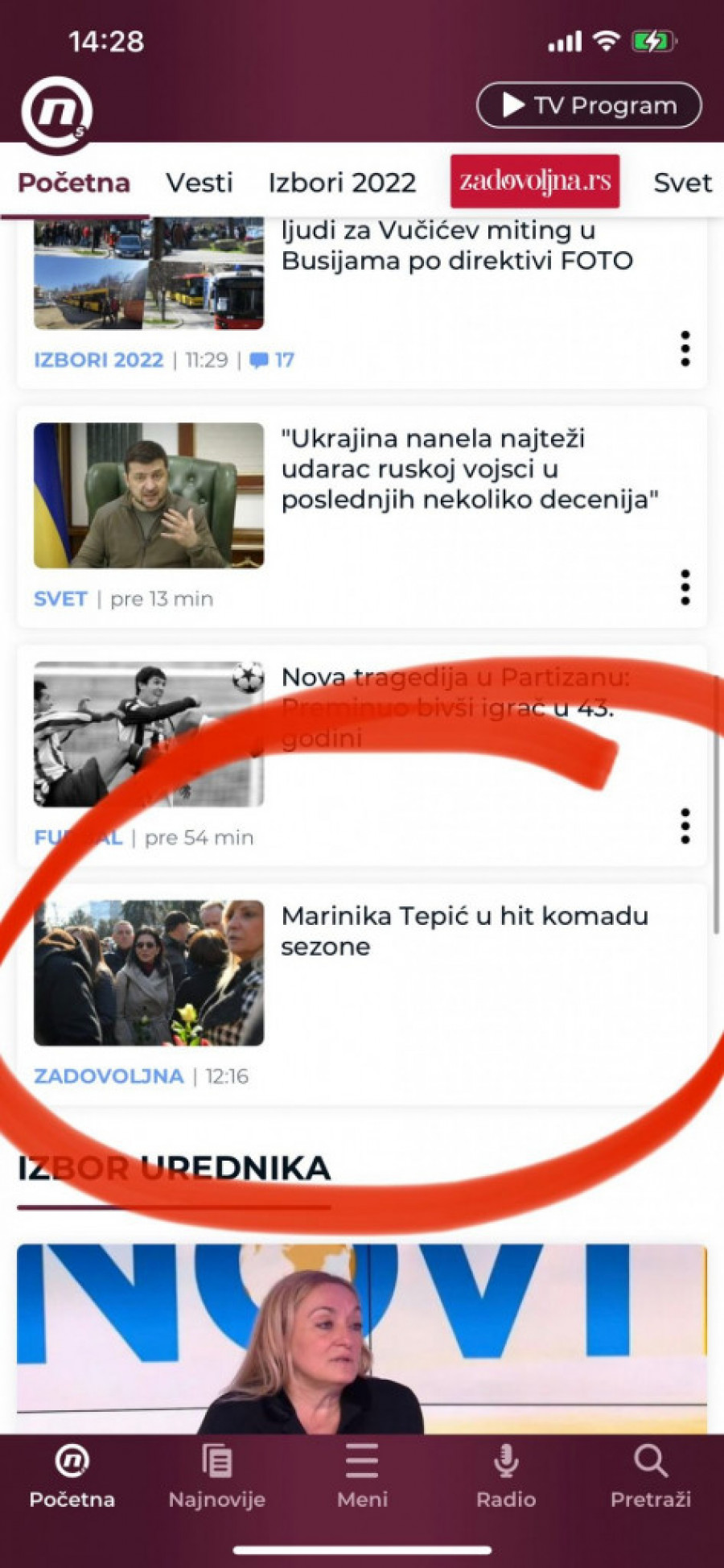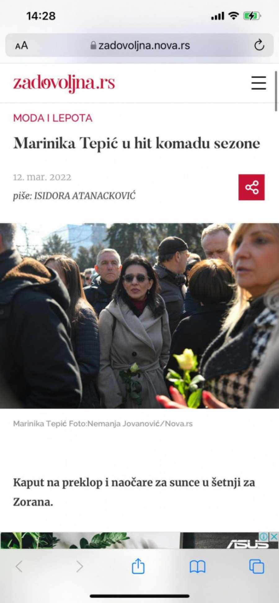 Portal Nova S, koji se nalazi pod njihovom uređivačkom kontrolom, objavio je tekst o kaputu u kojem se Marinika Tepić pojavila na pomen skupu – šetnji za Zorana, pod naslovom: “Marinika Tepić u hit komadu sezone”.