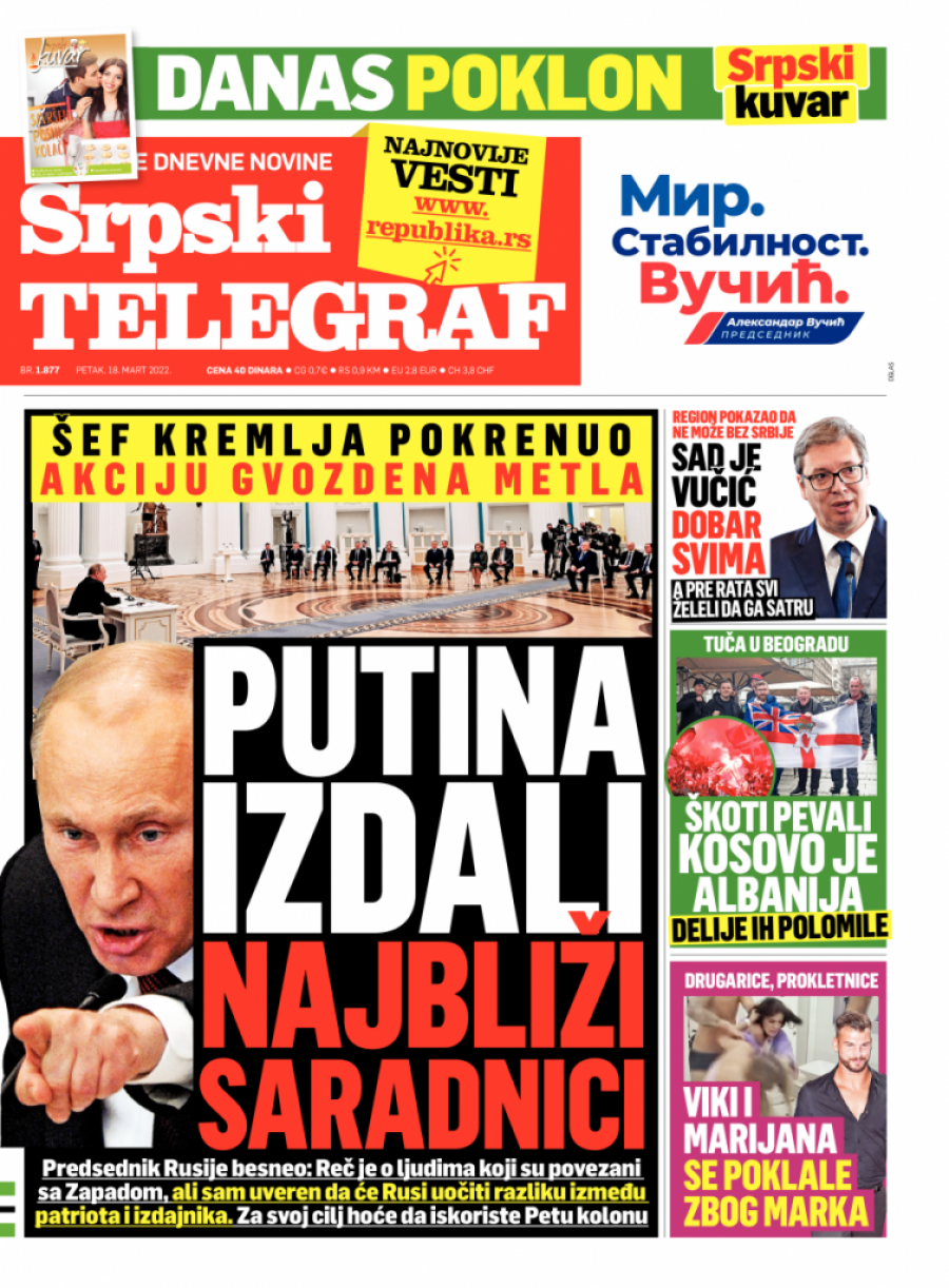 Srpski telegraf u štampanom izdanju za petak 18. mart donosi pregršt važnih i interesantnih priča.