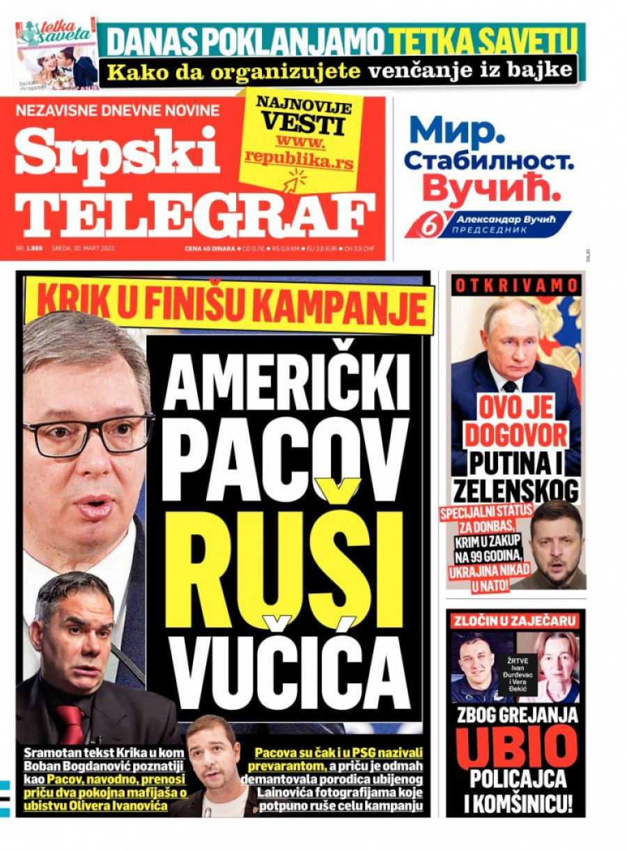 Srpski telegraf u štampanom izdanju za sredu 29. marta donosi pregršt važnih i zanimljivih priča.
