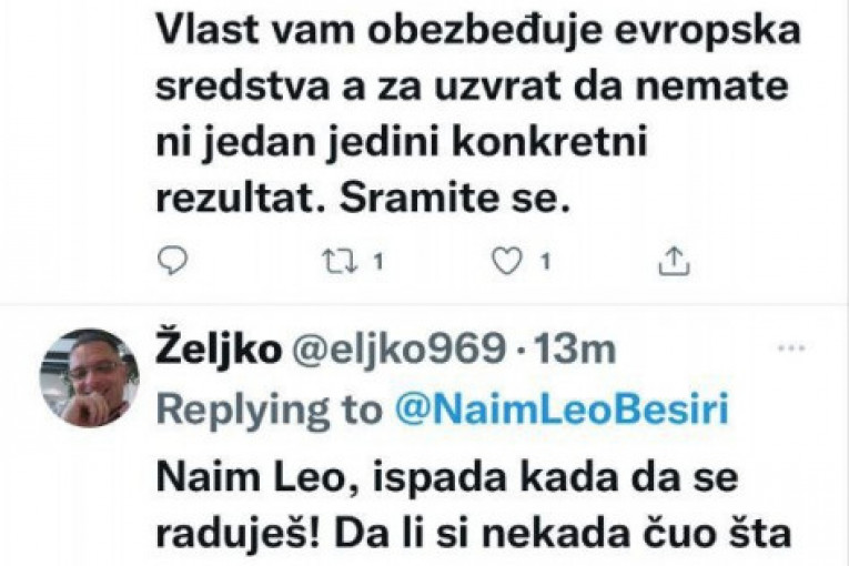 Ima čak i onih koji su Beširija nazvali "Vučićevom kučkicom", na šta im je on odgovorio da nije dovoljno da viču "Ua Vučić", već da moraju nešto i da urade.