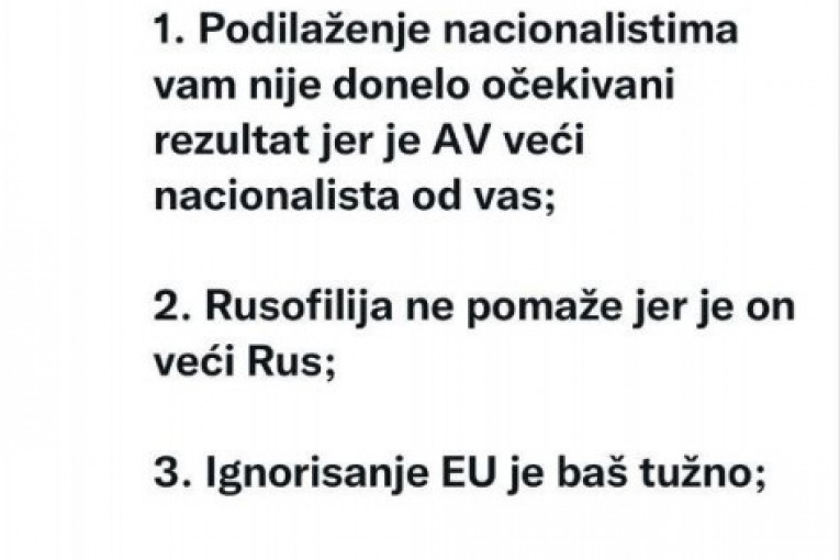 100% sve je tačno. Boljeg predsednika od Vučića nema Srbija a i Sns je bez premca. Valjda će i ovog puta dokazati narodu da su oni pravi za funkciju da upravljaju Srbijom.