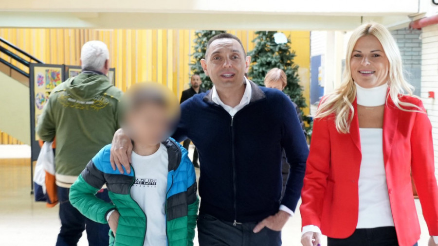 Vulin je na biračko mesto došao u pratnji supruge i starijeg sina.