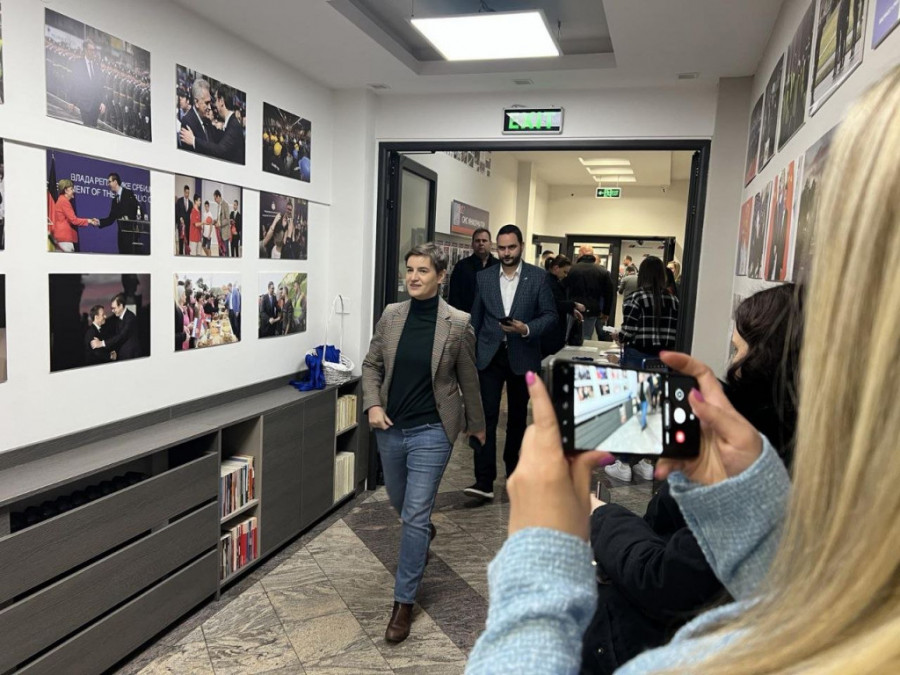 Predsednica Vlade Ana Brnabić došla je u pratnji prijatelja nasmejana i vidno raspoložena pozdravljajući prisutne novinare.