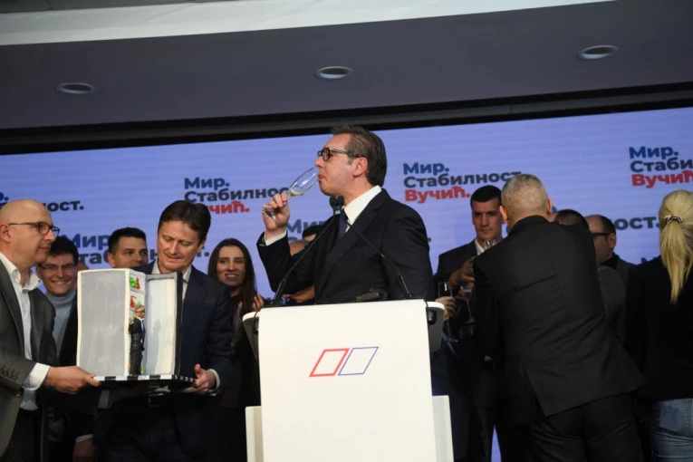 Predsednički kandidat Aleksandar Vučić saopštio je da je na izborima osvojio između 59-61 odsto glasova, što je više od neophodnih 50 odsto za pobedu u prvom krugu, dok je drugoplasirani Zdravko Ponoš osvojio 17,7 odsto.