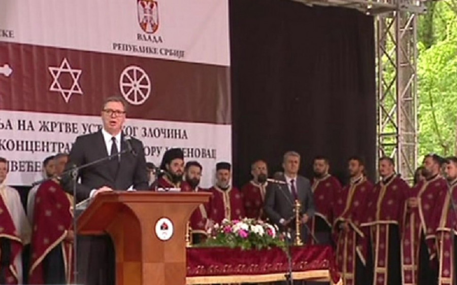- Nije slučajno što se o Jasenovcu danas ćuti. Tu dolazimo do onoga što nisu više samo brojevi, naša prezimena i imena, lica sa požutelih fotografija. Posle 10 godina koje sam proveo na vlasti u našoj Srbiji imam pravo da na ovakav način govorim. U Jasenovcu je stradalo više Srba, Jerveja i Roma nego svih nas od 1941. na ovamo u svim ratovima. A ko je spreman da op tome govori? Govori li se o tome na Zapadu? Naravno da se ne govori - kazao je predsednik Vučić.