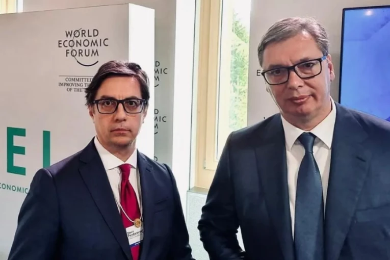 Predsednik Vučić se danas u Davosu sastao sa predsednikom Severne Makedonije Stevom Pendarovskim.