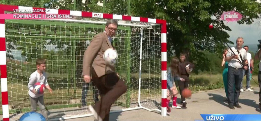 - Idem da mi neko sada da gol. Ajde, brže i jače - rekao je Vučić dečaku koji je šutirao i dao gol, i potom mu sportski čestitao.