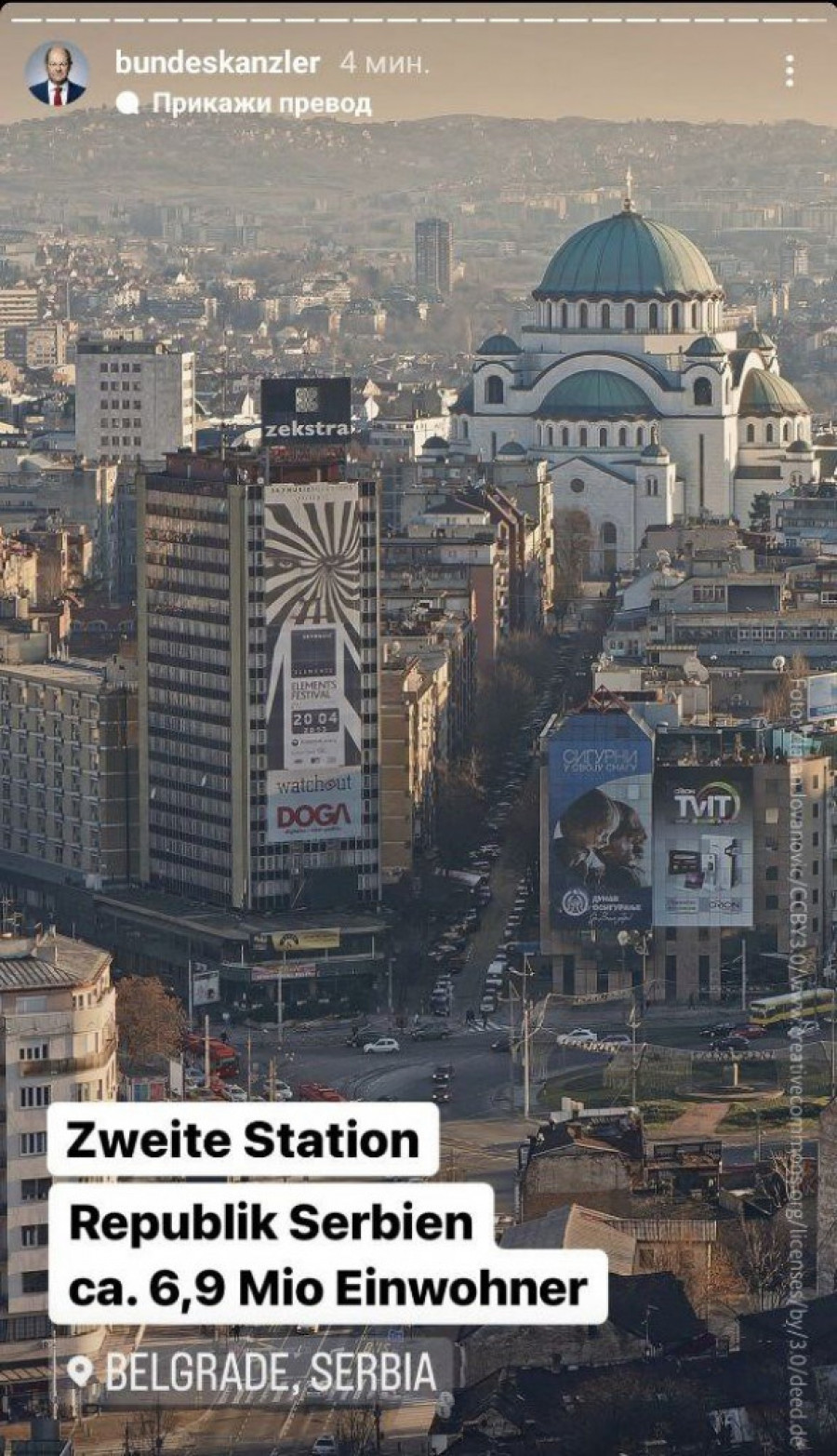Nemački kancelar objavio je fotografiju glavnog grada uz opis: "Druga stanica, Republika Srbija. Oko 6,9 miliona stanovnika."