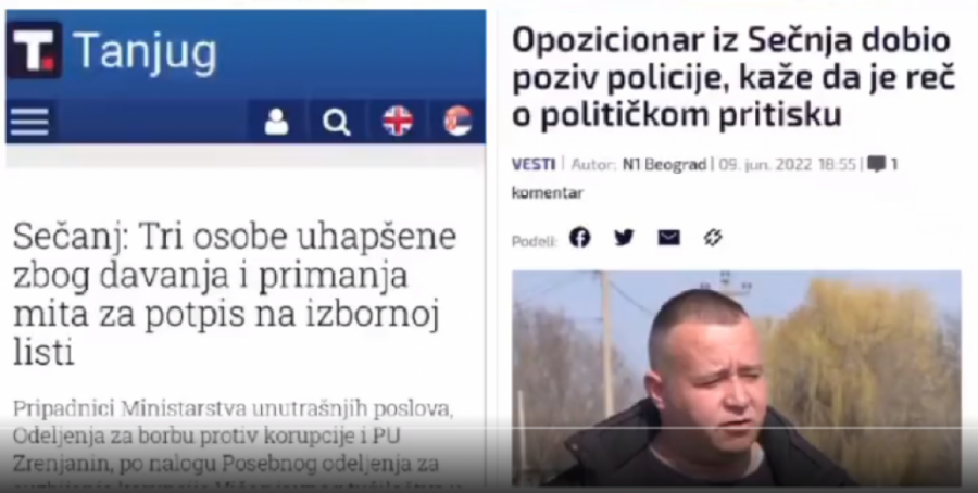 N1 je odmah pohitao medijski ispromoviše “nezadovoljne seljake” koji prete radikalizacijom protesta, a kolovođa tih “seljaka” je opozicionar iz Sečnja Vukašin Baćina hapšen zbog mita i kupovine glasova na izborima.