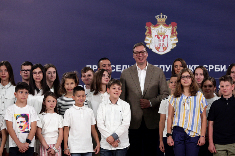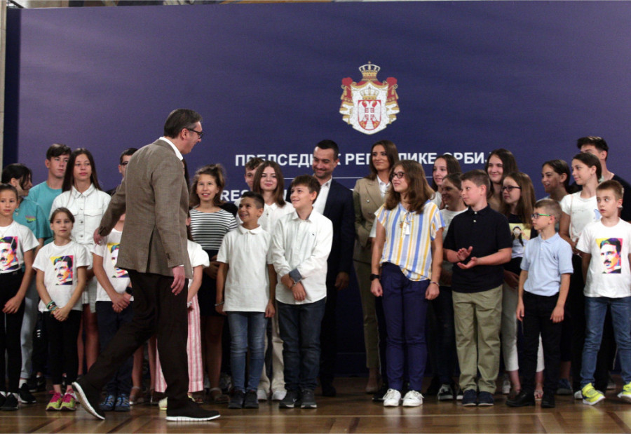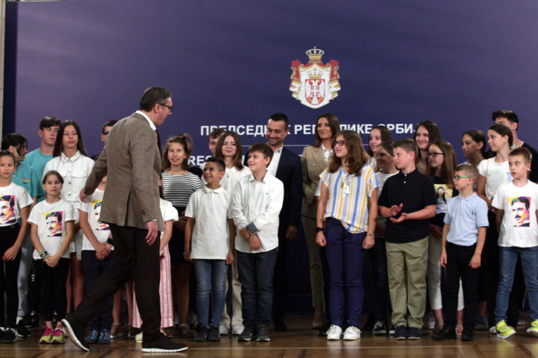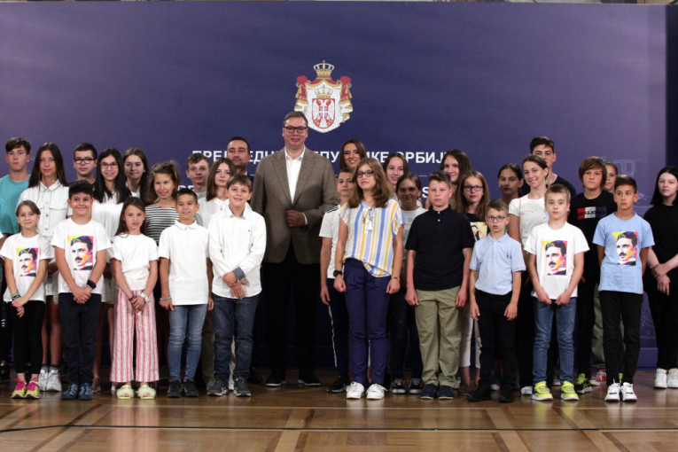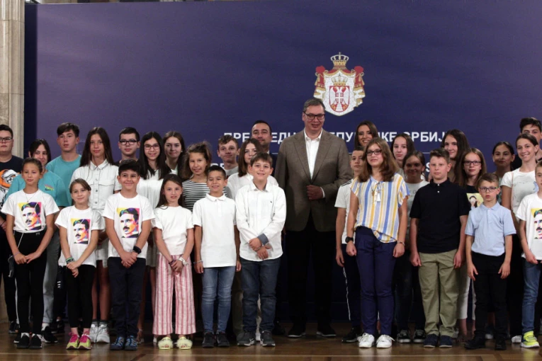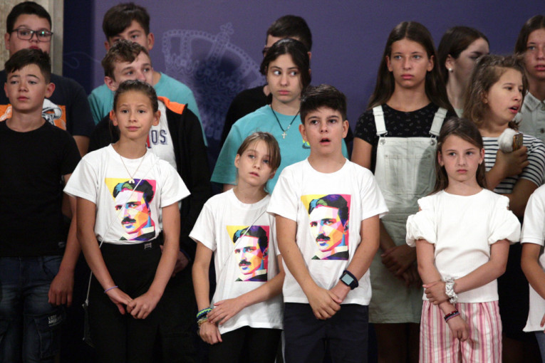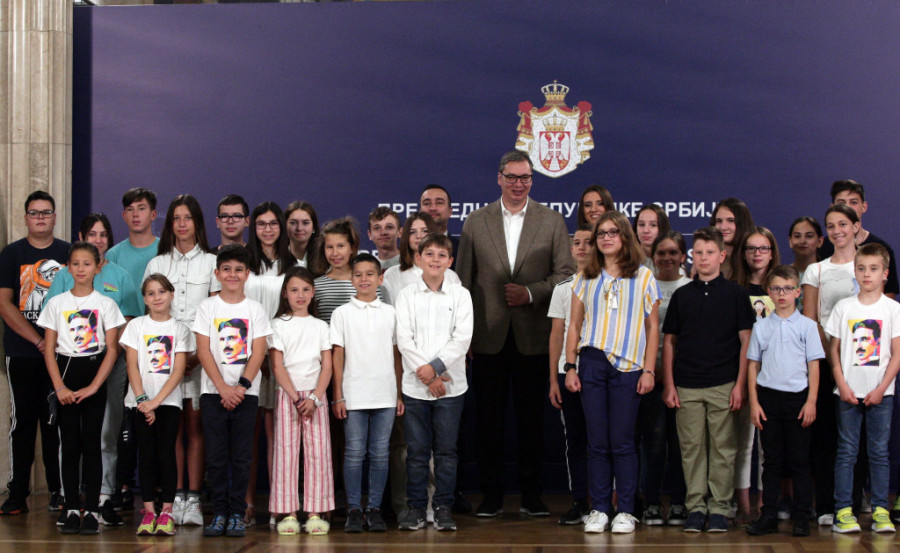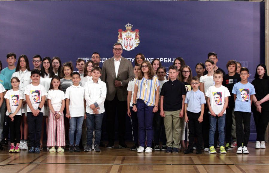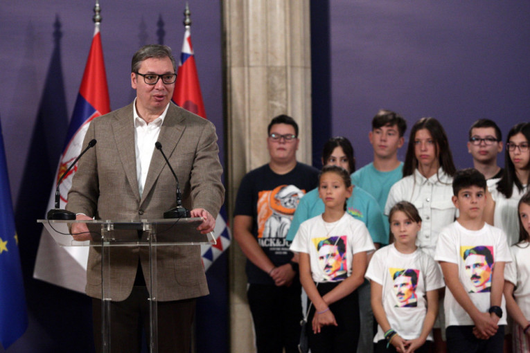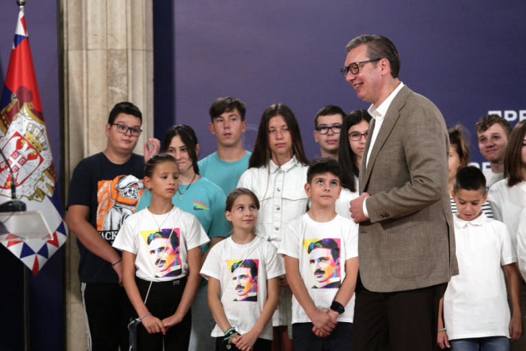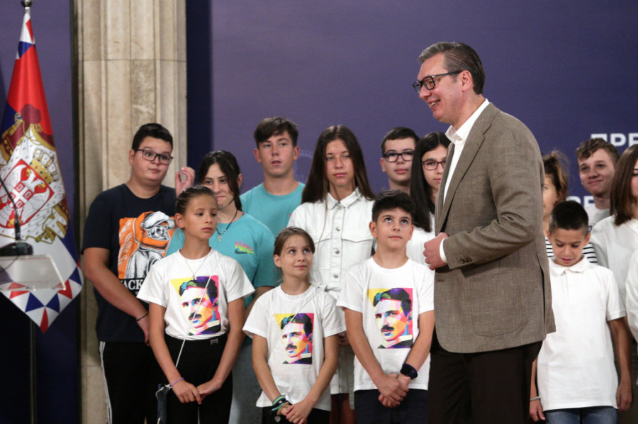 - Došlo je 34 dece iz regiona. Mnogo sam srećan što danas mogu da vas primim, i kada vas vidim sa majicama Nikole Tesle, znam koliko ste ponosni na Nikolu Teslu, koji je voleo i poštovao svoj narod. Srbija je uvek pribežište svakom čoveku. Državne granice koje danas postoje ne smeju da budu graničavajući faktor - kazao je Vučić.