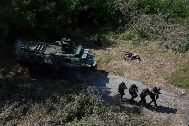 Predsednik Srbije Aleksandar Vučić prisustvuje pokazno-taktičkoj vežbi Ministarstva unutrašnjih poslova "Gruža 2022".