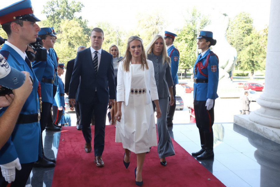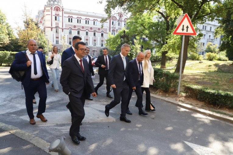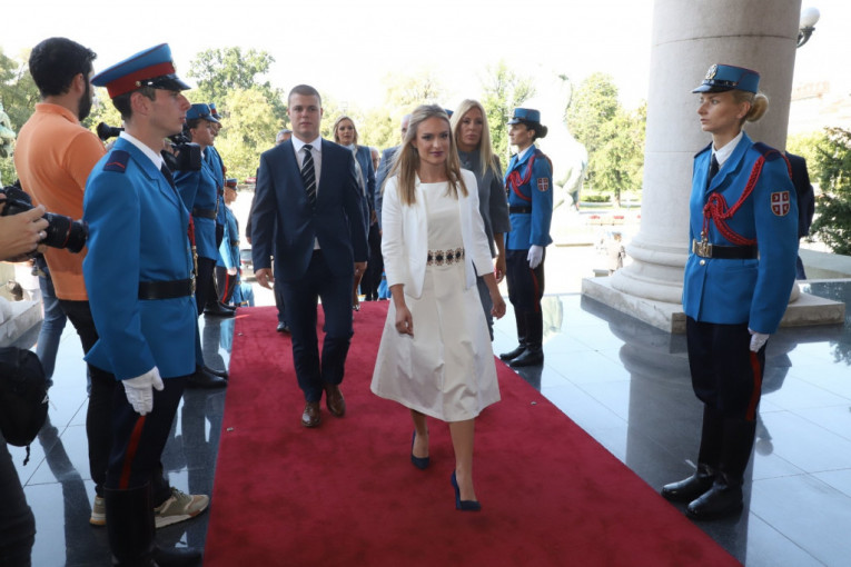 Marinika Tepić, potpredsenica SSP, dočekala Pavla Grbovića (PSG) pa mu rekla: "Pa, Pajo neka nam je sa srećom".