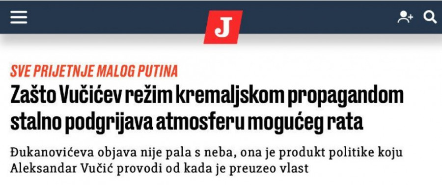 Sramotna propaganda na predsednika Srbije Aleksandra Vučića se nastavlja iz sata u sat, hrvatski Jutarnji list objavio je tekst s naslovom "Zašto Vučićev režim kremaljskom propagandom stalno podgrijava atmosferu mogućeg rata" što samo govori da hrvatska kampanja nema kraja i da prevazilazi sve granice zdarvog razuma.