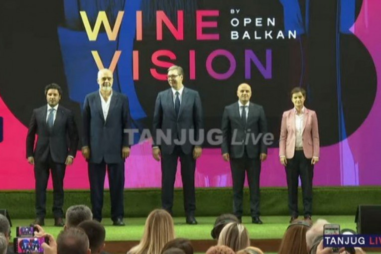 U prisustvu Vučića, Rame, Kovačevskog, Abazovića, kojima se na sceni pridružio i glumac Lazar Ristovski, nazdravljajući posebnim vinom koje je napravljeno u čast Otvorenog Balkana, zvanično je otvoren Sajam vina.