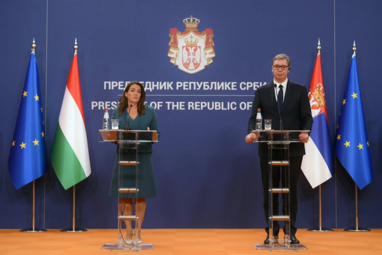 - To što danas živimo u ovakvom miru i što Mađari na teritoriji Srbiji mogu da žive u ovako mirnim uslovima i da se rukovodioci ove dve zemlje tako dobro slažu, nije nešto što se podrazumeva, već moram da se zahvalim Vučiću - navela je predsednica Mađarske.