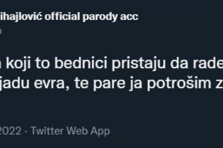 Duhovitost osobe koja se krije iza naloga nazvanog Zorana Mihajlović official parody acc krije tužnu istinu o tome kako zapravo narod percipira nakadašnju ministarku energetike.