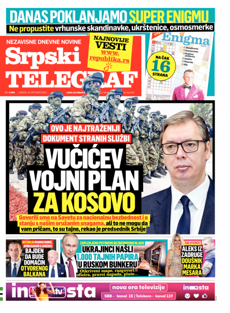 Srpski telegraf u štampanom izdanju za subotu 29. oktobar donosi pregršt važnih i interesantnih priča.