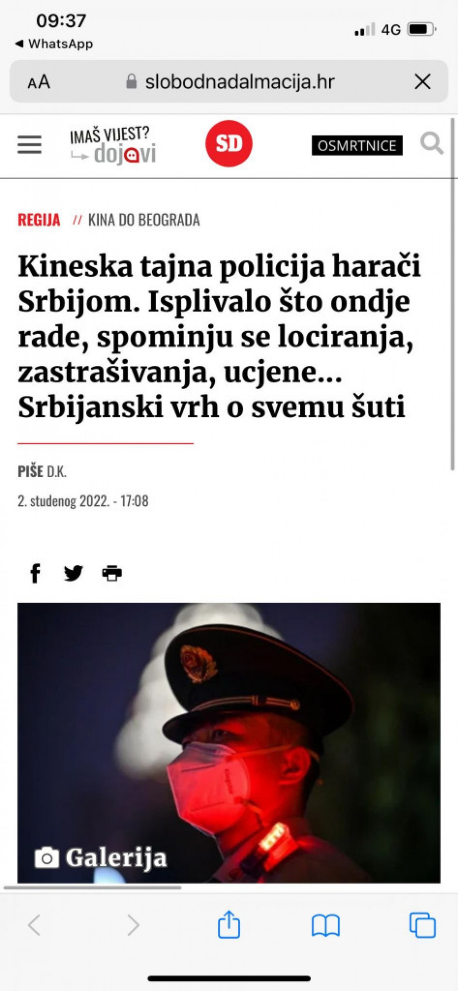 Ova hajka na Srbiju i predsednika Vučića ne jenjava,dok ne planiraju da se zaustave sa uvredama i lažima poput one da ''kineska policija harači Srbijom'', kako je ''isplivalo što ondje rade, spominju se lociranja, zastrašivanja, ucjene'' i za kraj, kao šlag na tortu, da ''Srbijanski vrh o svemu šuti''.