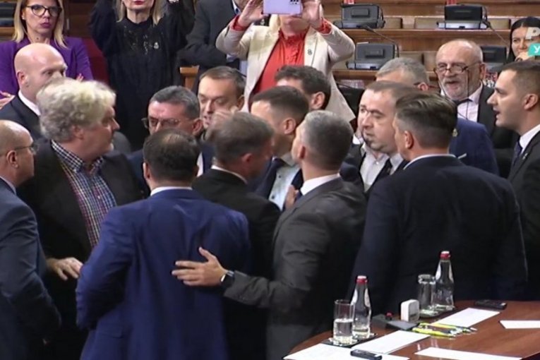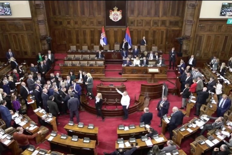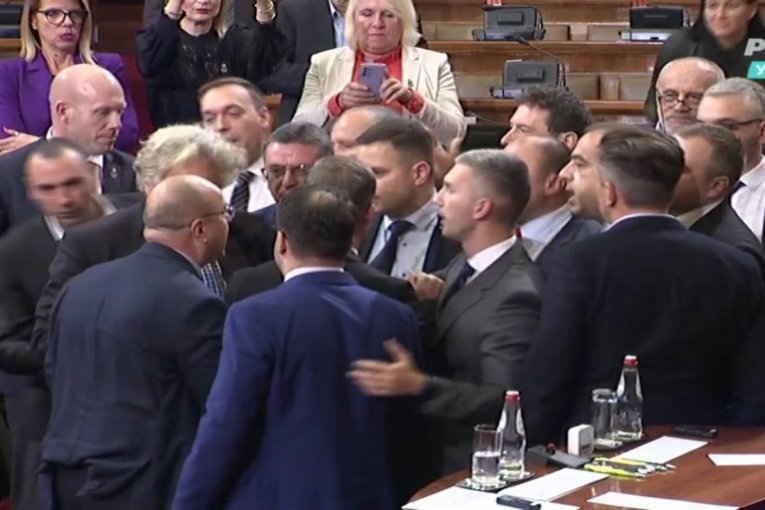 Ali to nije bilo sve. U popodnevnom delu sednice skupšitne, posle izlaganja šefa poslaničke grupe Narodne stranke Miroslava Aleksića, u sali je došlo do manjeg incidenta između poslanika vladajućih i opozicionih stranaka.