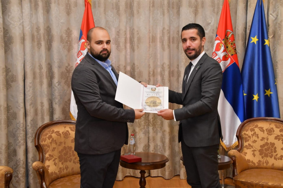 Ministar unutrašnje i spoljne trgovine Tomislav Momirović primio je danas medalju „Boža Janković - osvećeno Kosovo“ zbog velikog doprinosa u izgradnji stanova za pripadnike snaga bezbednosti koje mu je uručilo Udruženje ratnih dobrovoljaca 1912-1918.