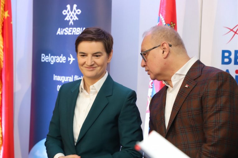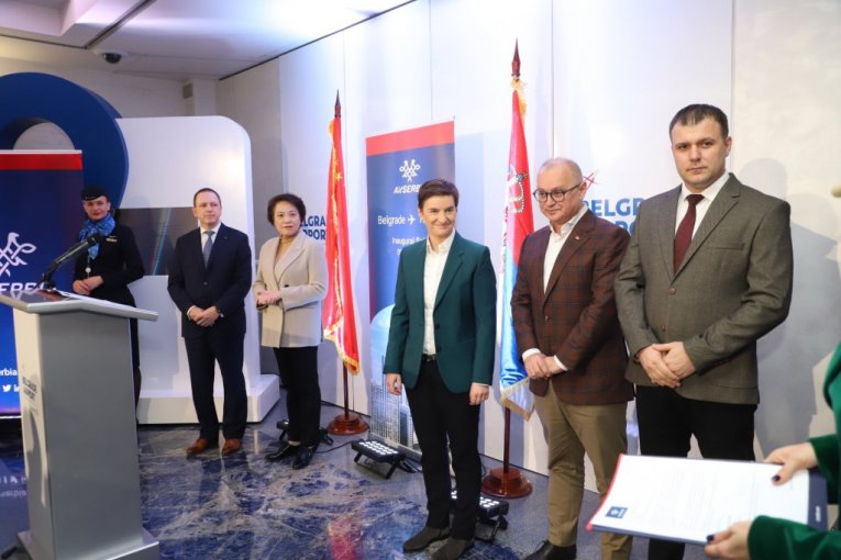 Premijerka Ana Brnabić ispratila je na aerodromu "Nikola Tesla" prvi let na novoj avionskoj liniji između Beograda i Tjenđina.