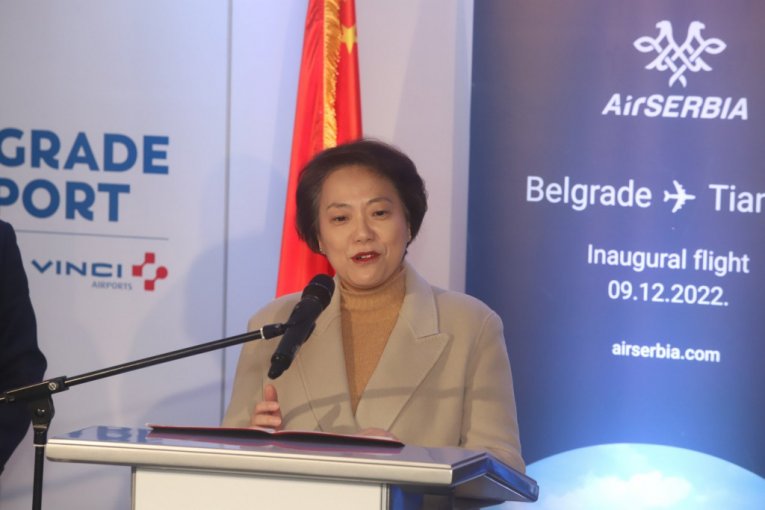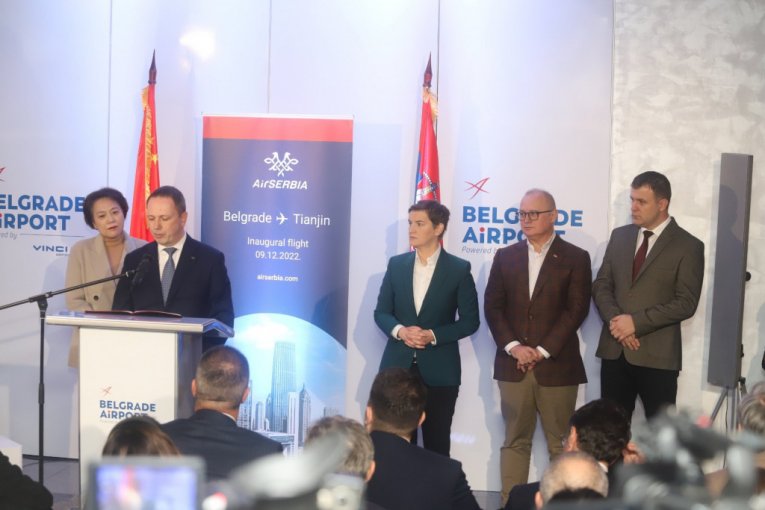 Premijerka je rekla da je let za Tjenđin značajan, jer je praktično to direktan let za Peking, budući da brzim vozom od aerodroma u Tjenđinu do Pekinga treba 30 minuta.