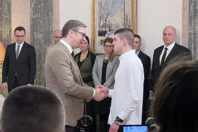 - Danas je meni bila zaista čast, sa politikom nema veze, upoznao sam jednu divnu porodicu, roditelja koji su odgojili jednog divnog dečaka. Ponosan sam što smo mogli da pomognemo. Pošto im nije bilo dovoljno da ga osude zbog majice, onda su doveli trojicu lažova, kako bi rekli da je izgovorio reči mržnje. Pre svega hvala Nikola, i vama Slobodanka i Dragomire što ste danas sa sinom. Nikola, oni su te i najviše čekali - rekao je predsednik.