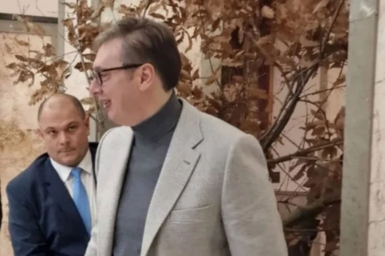 Predsednik Srbije Aleksandar Vučić jutros je uneo badnjak u Predsedništvo Srbije.