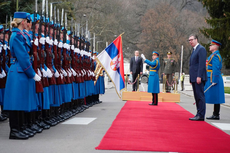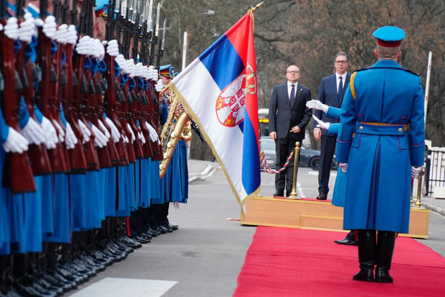 Uoči sastanka, po dolasku predsednika Srbije u Dom Garde, komandant Počasnog bataljona Garde VS predao mu je raport.