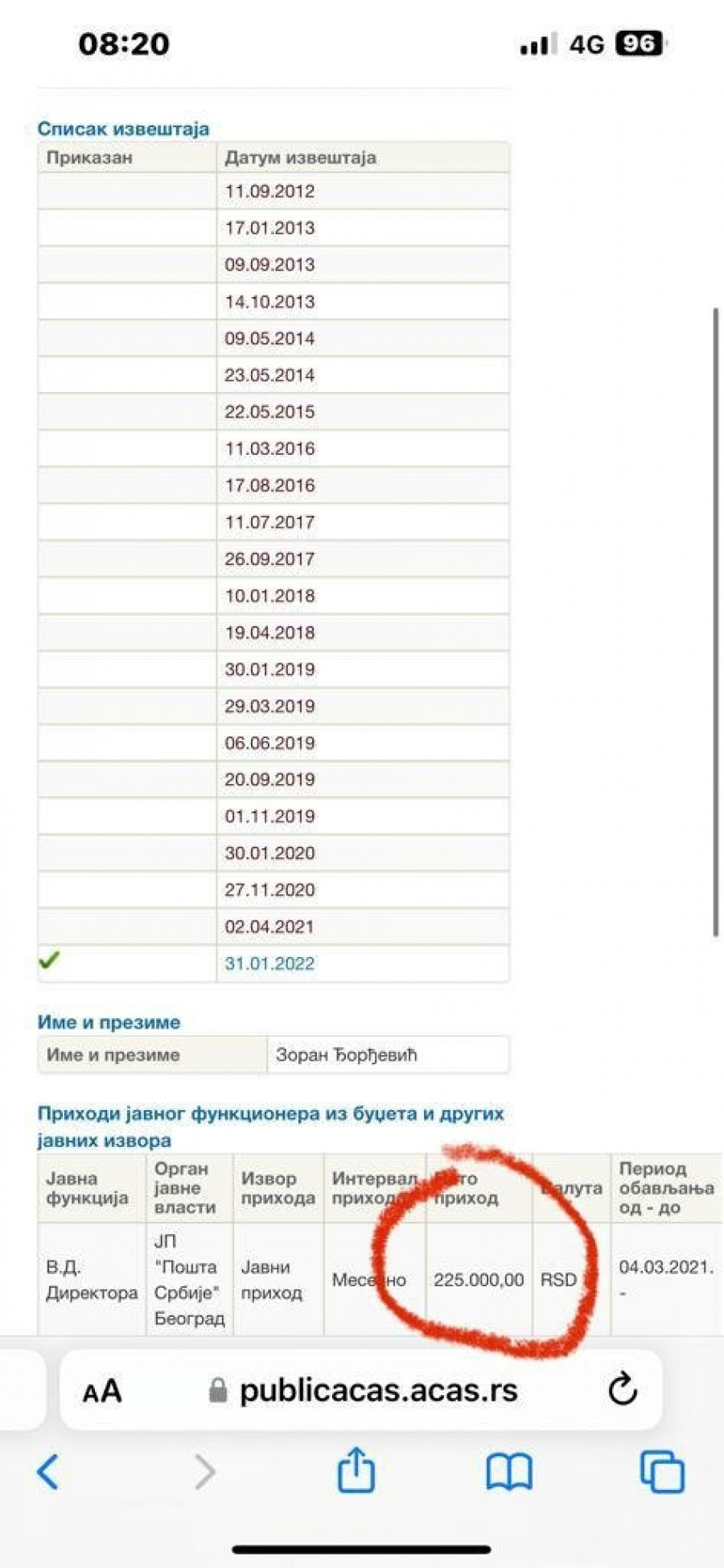 Na njihovu žalost, podaci kojima se Aleksić tako lako "frljao" i oni preneli kao neku dogmu, dostupni su i lako proverljivi, pa se jednostavnom pretragom Agencije za borbu protiv korupcije može videti da je ta svota duplo manja, tačnije 225.000 dinara, kada govorimo o plati Vršioca dužnosti direktora JP Pošte Srbije Zorana Đorđevića.