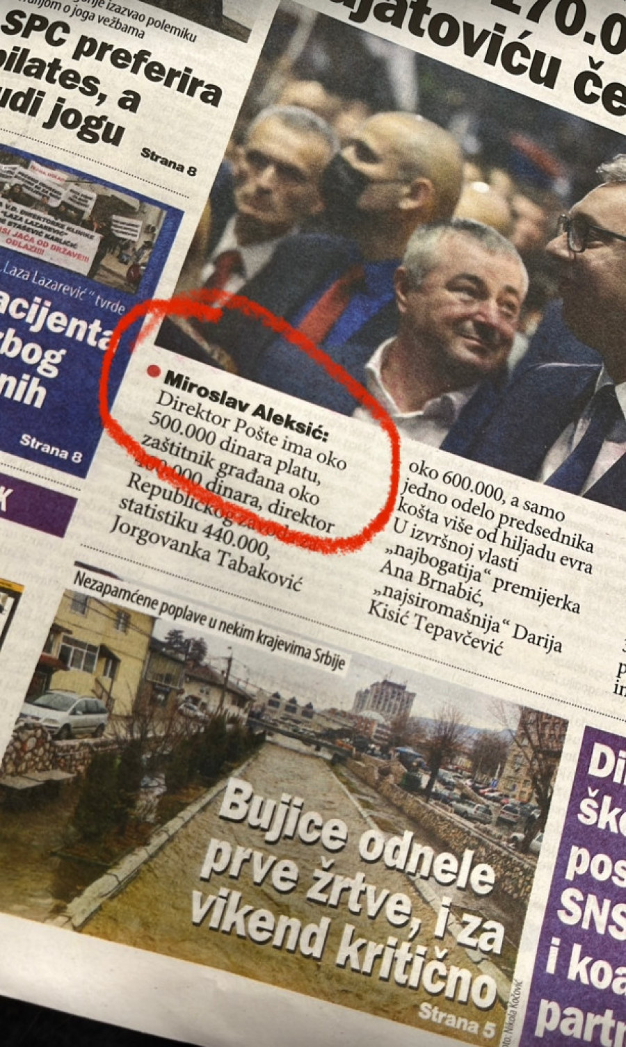 Potpredsednik Narodne stranke Miroslav Aleksić "odokativno" naveo platu direktora Pošte, tajkunski medij brže-bolje preneo bez ikakve provere.