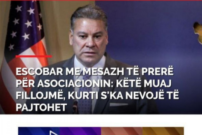 - Mi ćemo to uraditi, ja ću to uraditi tako što ću naći partnere, ima mnogo ljudi koji bi želeli da vide bolje odnose između Srba na severu i ostatka zemlje - rekao je Eskobar na konstataciju da da je Kurti više puta rekao da neće formirati ZSO i dodao da "jedna osoba i jedna stranka ne mogu da odustanu od sprovođenja pravno obavezujućih tačaka".