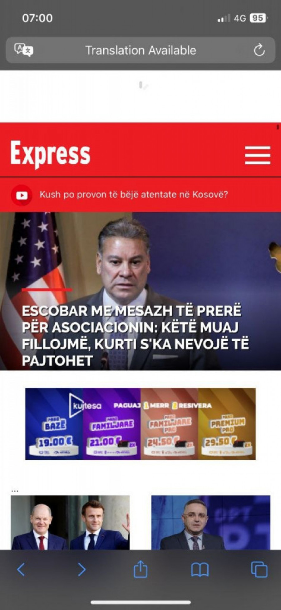 Specijalni izaslanik SAD za Zapadni Balkan Gabrijel Eskobar razgovarao je sa prištinskom i srpskom delegacijom o francusko-nemačkom predlogu za rešavanje pitanja KIM .