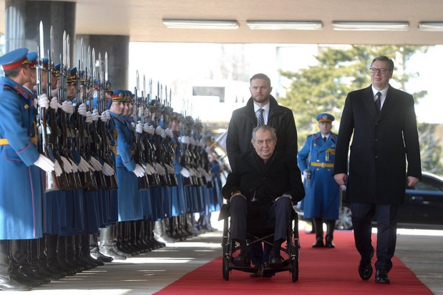 Predsednik Aleksandar Vučić svečano je danas dočekao ispred Palate Srbija predsednika Češke Miloša Zemana, uz intoniranje himni dve zemlje, crveni tepih i gardu Vojske Srbije.