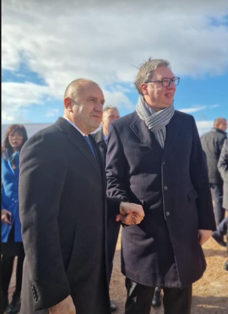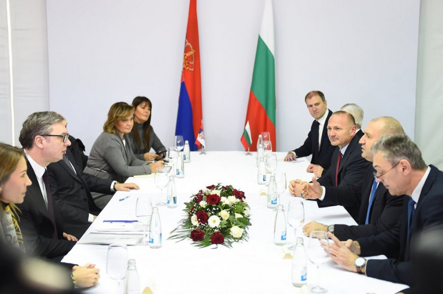 Vučića je na gradilištu dočekao predsednik Bugarske Rumen Radev i oni su imali bilateralni sastanak sa delegacijama.