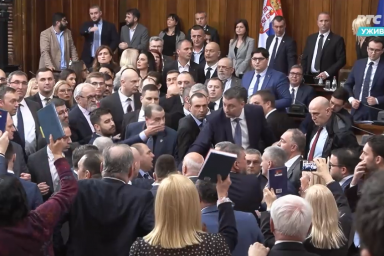 Skupštinsku raspravu je predvodio Miloš Jovanović, lider Nove demokratske stranke, kao i drugi opozicioni poslanici. Nastao je metež, budući da su nasrnuli na predsednika Srbije Aleksandra Vučića.