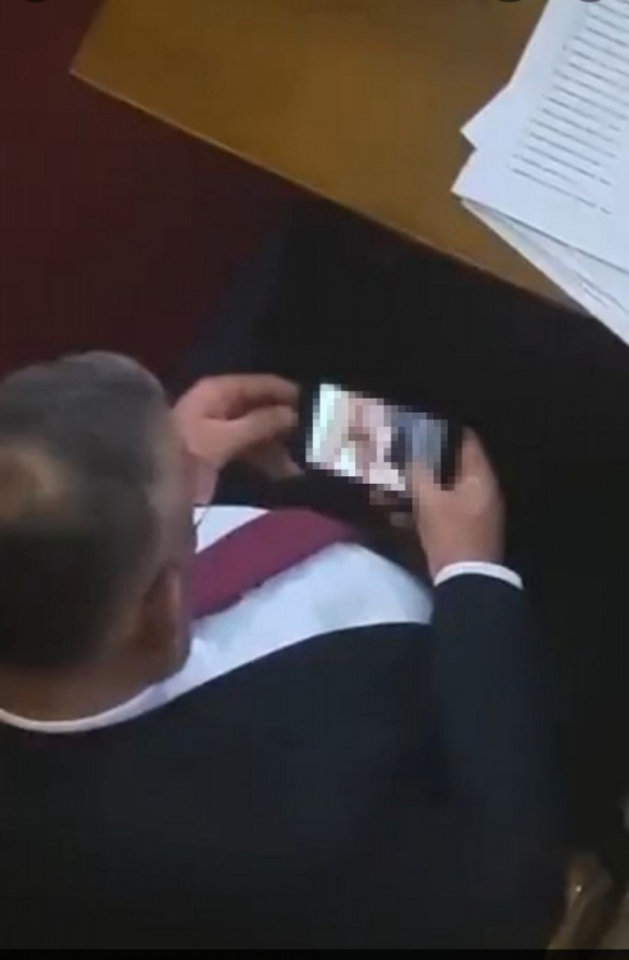 Za razliku od nje, kolega Zvonimir Stević, koji je snimljen da ma istoj sednici usred parlamenta na mobilnom telefonu gleda snimak sa ekspicitnim sadržajima, pravi se mrtav.
