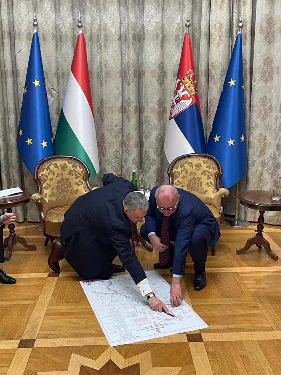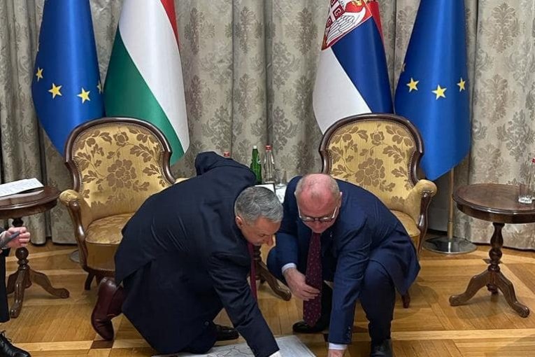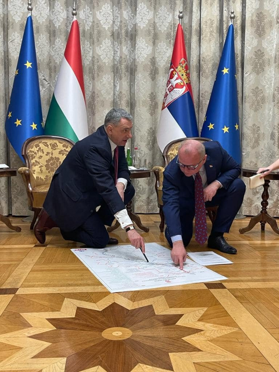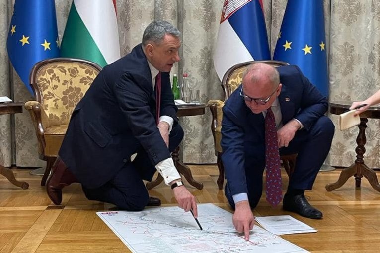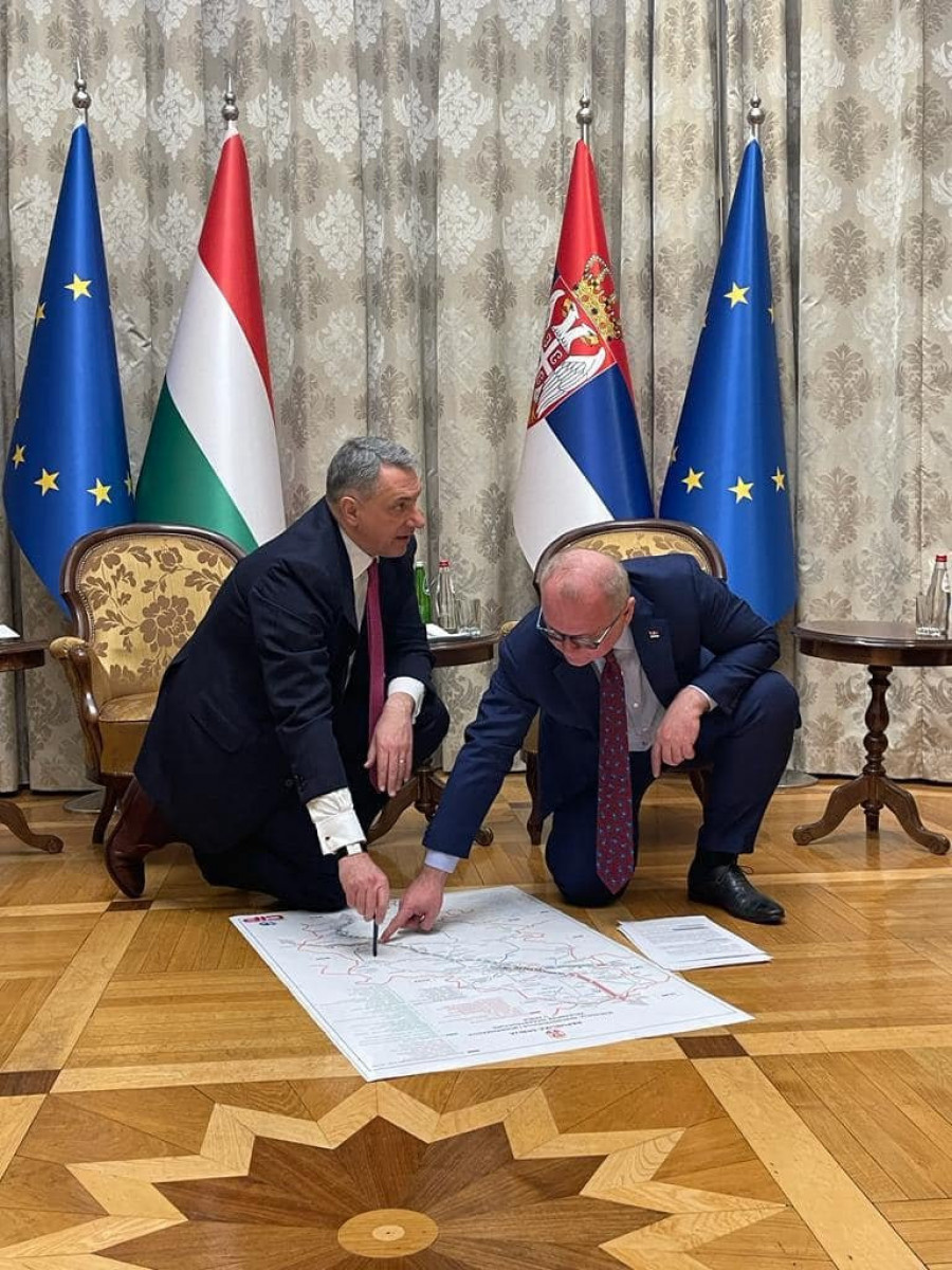 - Moj mađarski kolega, ministar građevinarstva i transporta Janoš Lazar i ja na današnjem sastanku u Vladi Srbije. Ne gubimo vreme, a ne čekamo ni stolove. Mape smo stavili na pod i radimo na zajedničkim projektima. Tu smo da ubrzamo ostvarenje vizije predsednika Aleksandar Vučić i premijera Orbana o strateškom partnerstvu Srbije i Mađarske u kojem saobraćajno povezivanje ima važnu ulogu.