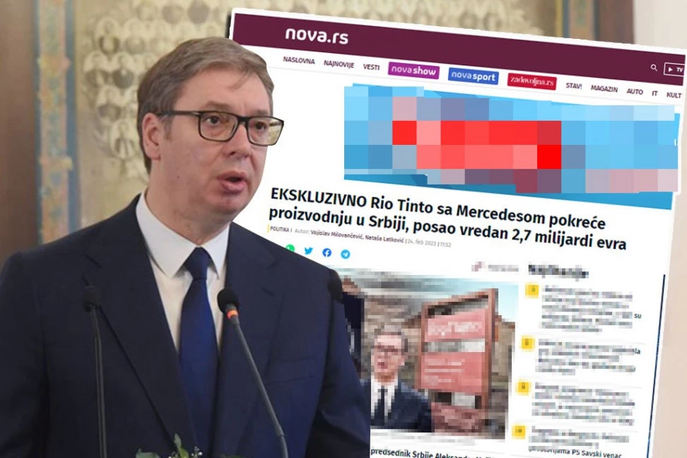 Naime, portal Nova S objavio je tekst pod naslovom "Rio Tinto sa Mercedesom pokreće proizvodnju u Srbiji, posao vredan 2,7 milijardi evra".