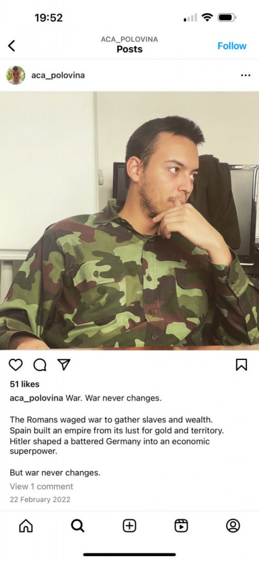 Mladić upisan kao Aca Polovina na Instagramu podelio je u storiju anketu sledeće sadržine: