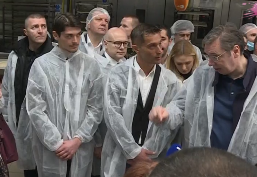 Vučić je obišao pogon u kome se prave hleb, peciva, torte i kolači, kao i halu u kojoj se filuju torte.