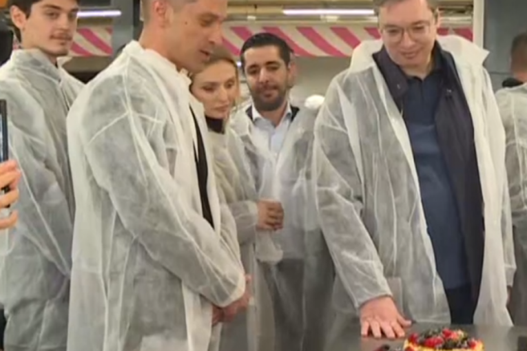 - Ovo je čitava industrija. Super izgleda ovo što radite. Mnogo mi je drago što sam sve ovo video i želim vam puno sreće u radu - poručio je predsednik, a potom se i sam oprobao u filovanju torte.
