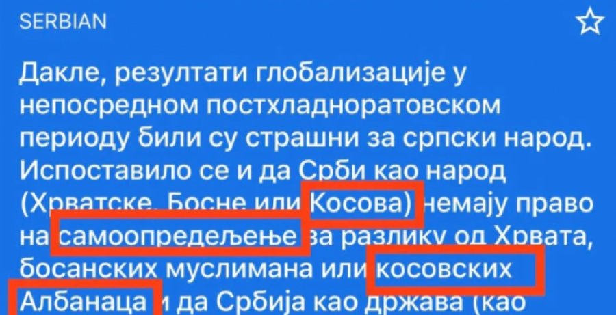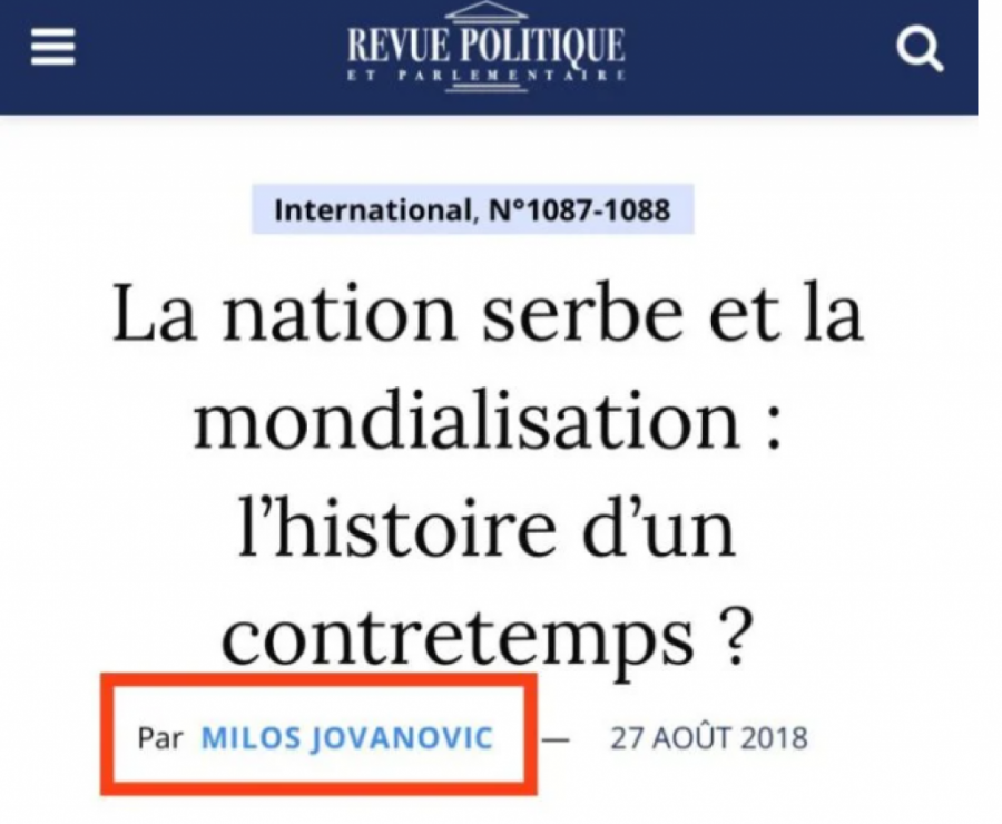 Jasno je da lažni patriota Miloš Jovanović u Srbiji priča jednu priču, dok strancima na francuskom piše da je Kosovo država i da su Albanci imali pravo na samoopredeljenje.