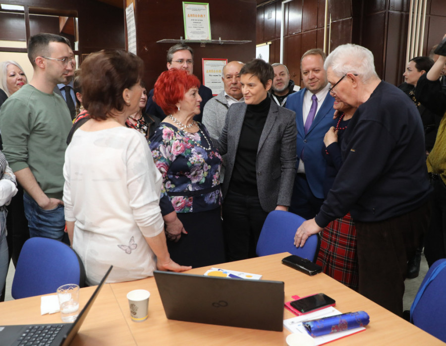 U Udruženju penzionera u Boru, Brnabić je razgovarala sa najstarijim sugrađanima koji pohađaju deo obuka za digitalne veštine.